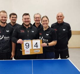 Freitag, 06.12.24 Die erste Mannschaft feiert einen deutlichen 9:4-Heimsieg über die TTSF Hohberg V.