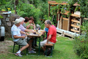 Die Tour ging von Haslach über Appenweier und Willstätt nach Kittersburg. In der Kittersburger Mühle haben wir eine gemütliche Mittagspause mit Mittagsessen verbracht. Nach der Stärkung fiel uns dann der Schwung auf das Rad viel leichter und mit einem Schlenker über Hohnhurst und Hesselhurst fuhren wir wieder in Richtung Renchtal. Eine kurze Unterbrechung gab es dann in Windschläg. Die Einladung zu einem Gläschen Wein in einem Garten haben wir gerne und dankend angenommen. Über Ebersweier, Nussbach und Oberkirch ging es wieder zurück nach Haslach an die Klingelberghalle. Der angekündigte Regen hat uns auf der ganzen Tour fast verschont. Es wurde angeregt, diese E-Bike Touren mit anderen Zielen öfter zu wiederholen.